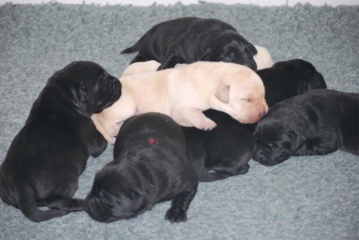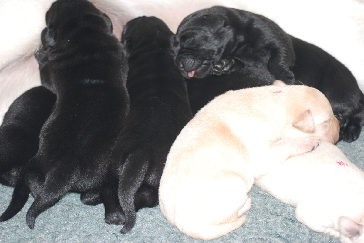 16-05-22 Sju valpar födda! Tre svarta pojkar, två svarta flickor och två gula flickor