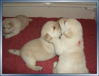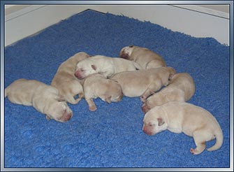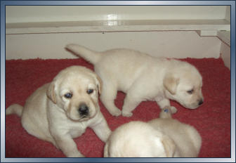 Valparna här nedanför är 4 veckor gamla. Överst de fyra pojkarna och