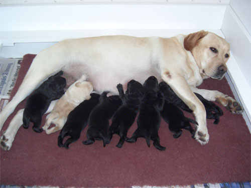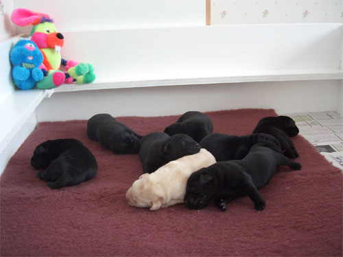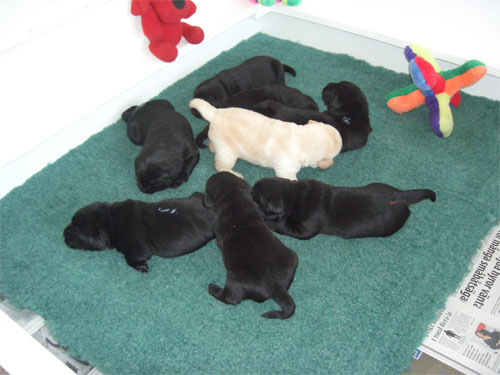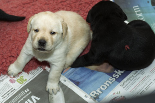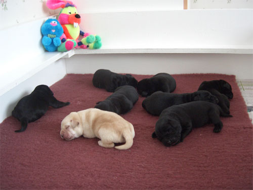 Labradorvalpar födda 090307, en gul pojke, tre svarta pojkar och fyra svarta flickor. Se bilder nedan.