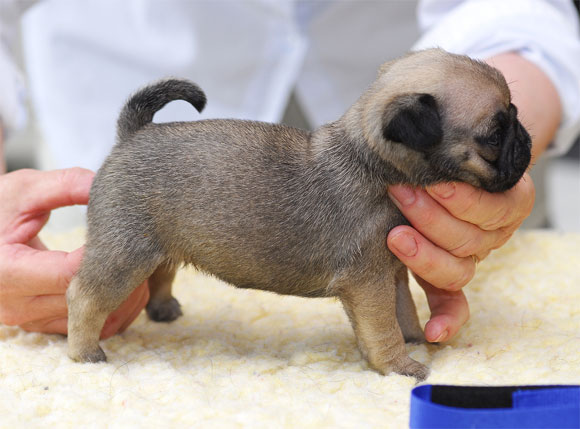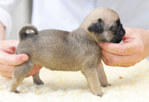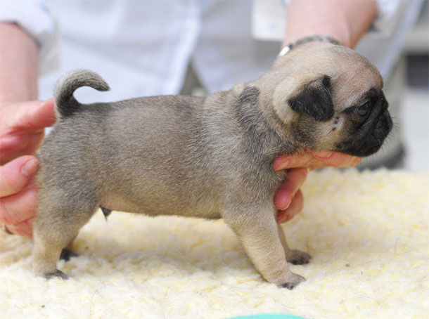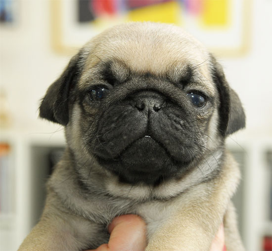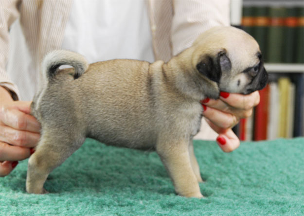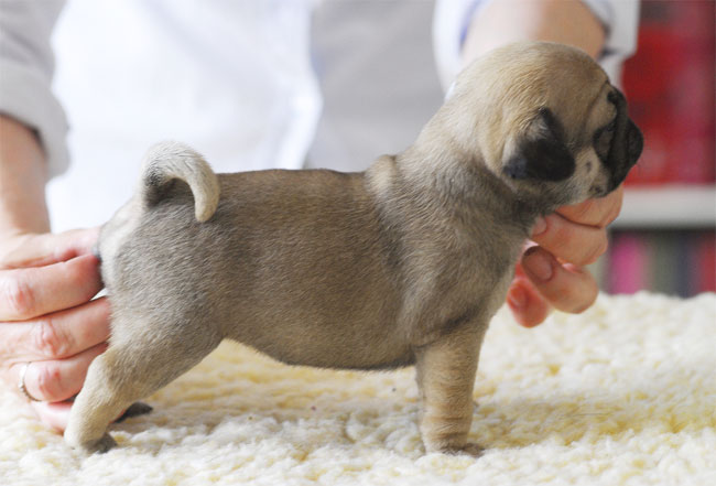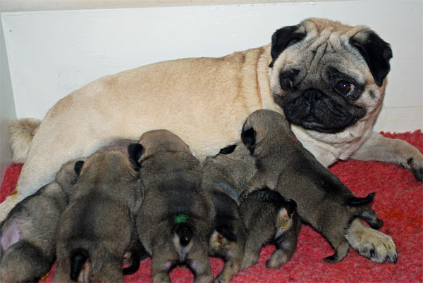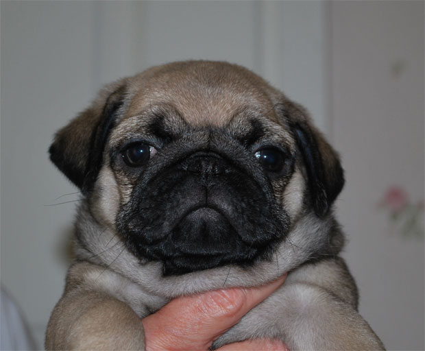 Gula mopsvalpar födda 2012-06-06 Fyra pojkar och tre flickor