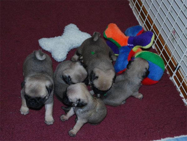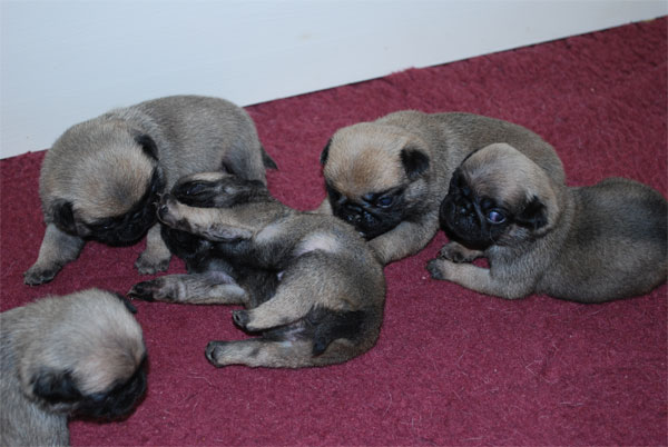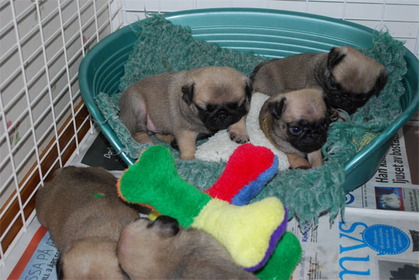 Bilder på "Zonjas" gula mopsvalpar, födda 101010 - se nedan